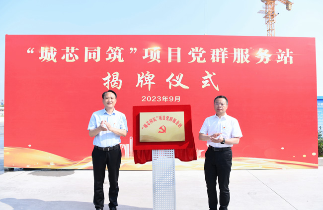 園區(qū)黨工委委員、管委會(huì)副主任崔廣全、張漢華共同為“城芯同筑”項(xiàng)目黨群服務(wù)站揭牌,開啟央企與地方企業(yè)黨建共建的美好開端。
