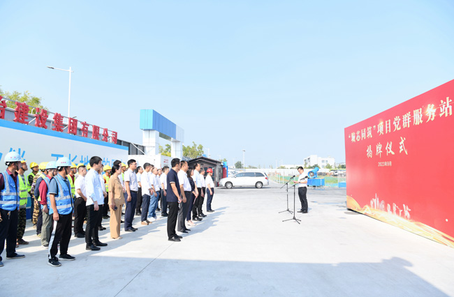 9月1日上午,城發(fā)公司“城芯同筑”項(xiàng)目黨群服務(wù)站揭牌儀式在園區(qū)智慧信息產(chǎn)業(yè)園項(xiàng)目部現(xiàn)場(chǎng)舉行,園區(qū)黨工委委員、管委會(huì)副主任、園區(qū)機(jī)關(guān)及直屬單位黨委書記崔廣全,園區(qū)黨工委委員、管委會(huì)副主任、園區(qū)國資國企黨委書記張漢華,城發(fā)公司管理層及全體黨員,五礦二十三冶華東分公司和江蘇華盛監(jiān)理公司黨員代表參加活動(dòng)。