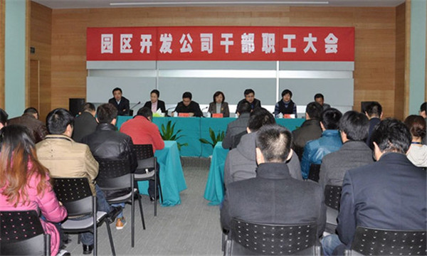 2月20日上午,園區(qū)開發(fā)公司召開干部職工大會,歡送任職期滿的丁琦、吳穎同志,歡迎新任總裁陸志剛、財務(wù)總監(jiān)陶潔同志。公司常務(wù)副總裁鮑淮斌同志主持會議。