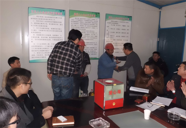 園區(qū)公舍三期西楚金地和白領(lǐng)公寓項(xiàng)目是今年園區(qū)的重點(diǎn)工程,為創(chuàng)建文明工地,構(gòu)建和諧園區(qū),營造關(guān)愛幫扶、互助互濟(jì)的良好氛圍,自開工以來,項(xiàng)目部辦公室就設(shè)立了募捐箱,并在元旦即將到來之際,用募集到的善款幫助工地上生活困難的建筑工人,讓困難工人群體感受到社會的溫暖和正能量,增強(qiáng)其歸屬感,在工地、在園區(qū)也能感受到家的溫馨。