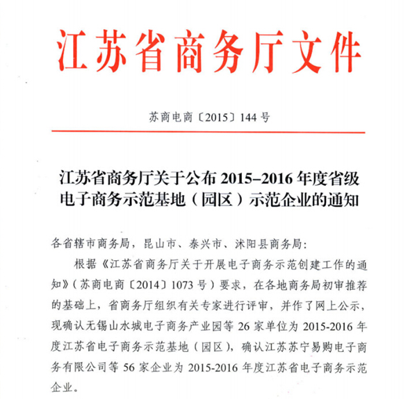 3月9日,江蘇省商務廳正式發(fā)文公布“江蘇省電子商務示范基地”名單,蘇宿電子商務產業(yè)園喜獲2015-2016年度電子商務示范基地。