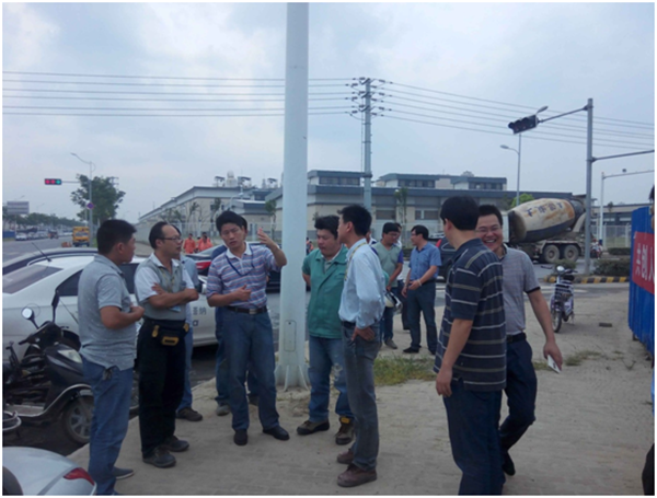 會議分兩階段進行,第一階段查看施工現(xiàn)場作業(yè)面及存在問題,第二階段在會議室聽取可發(fā)科技配套工程相關項目負責人匯報項目進展情況和需要協(xié)調的問題,討論相關協(xié)調方案及時間節(jié)點。