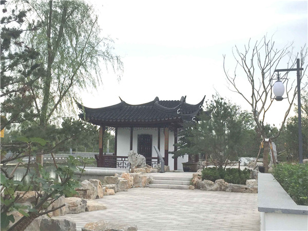 園區(qū)富民河北岸西段景觀綠化工程,位于富民河北岸(通湖大道至石公山路,石公山路至通達大道),總面積8024平方米,總投資約455萬元,整體風(fēng)格為蘇式風(fēng)格,借鑒蘇州園林元素,如滄浪亭、獅子林、拙政園和留園的園林特點,打造園區(qū)的“蘇式園林”。