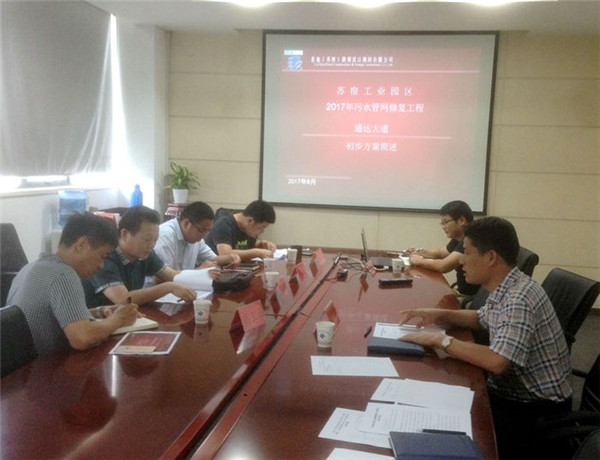 根據(jù)園區(qū)污水規(guī)劃修編意見和2017年建設(shè)計劃,開發(fā)公司啟動商住區(qū)通達(dá)大道污水維修項目。為確保維修方案安全可靠,近日,開發(fā)公司組織召開通達(dá)大道污水管道改造工程方案評審會,特邀設(shè)計、建設(shè)、規(guī)劃和施工四個方面共五名專家,并邀請園區(qū)規(guī)劃建設(shè)局相關(guān)處室人員參加會議。