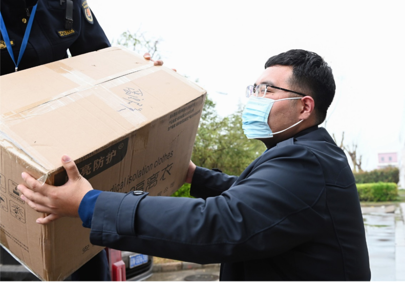 沒有大家哪有小家,疫情防控關(guān)系園區(qū)每一個人。3月11日夜里12點,園區(qū)招商與經(jīng)濟(jì)發(fā)展局綜合處科員王鑫看了眼熟睡中懷孕的妻子,便匆匆趕赴管委會,投入到核酸檢測物資調(diào)配工作。凌晨2點分發(fā)完最后一組防疫物資后,他又立刻趕赴聚成金剛石公司的夜班人員核酸檢測現(xiàn)場。兵馬未動、糧草先行,負(fù)責(zé)物資保障工作的他,深知打贏這場疫情防控攻堅戰(zhàn),離不開充足的物資準(zhǔn)備。3月12日以來,他所在的物資工作組共接收調(diào)撥核酸采樣管3.3萬支、防護(hù)服3000件、防護(hù)面罩12000件、外科口罩100萬個、隔離服11000件等。為了保障物資供應(yīng)分發(fā)精準(zhǔn)規(guī)范,他研究建立了“一表兩清單”物資發(fā)放流程,實現(xiàn)物資調(diào)撥、分發(fā)流程化、規(guī)范化,大大提升了分發(fā)效率,做到了分秒必爭。夜班檢測結(jié)束后,顧不上回家休息的他,早上6點又匆匆趕到皓峰電器公司白班人員采樣現(xiàn)場,投入到下一場緊張有序的核酸檢測工作當(dāng)中。