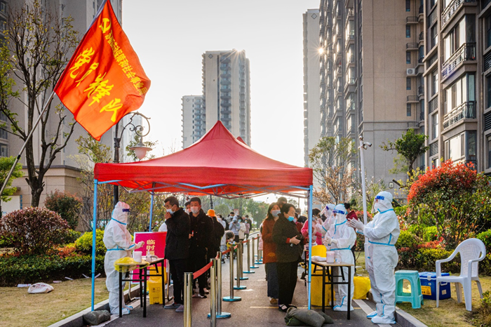 一支黨員先鋒隊,全力打贏疫情防控阻擊戰(zhàn) 疫情就是命令。為有序開展園區(qū)大規(guī)模區(qū)域核酸檢測工作,園區(qū)機關(guān)、企事業(yè)單位黨員干部積極響應(yīng)黨工委號召,火速集結(jié),爭分奪秒開赴核酸檢測預(yù)定點位。從凌晨的物資準備、早上5點的核酸檢測,到夜間的“掃樓行動”,忙碌地穿梭于樓棟之間的黨員突擊隊員,堅決落實好“不落一戶,不漏一人”的防控要求。共產(chǎn)黨員、園區(qū)安委辦綜合協(xié)調(diào)與巡查督查處副處長朱婷婷說:“在這個疫情防控的緊要時期,作為一名共產(chǎn)黨員,拉得出、打得響,是我對自己最基本的要求。”在履行防控職責(zé)同時,黨員志愿者和醫(yī)護人員跨前一步,為社區(qū)獨居老人、行動不便老人提供送檢上門等貼心服務(wù),受到群眾廣泛點贊。