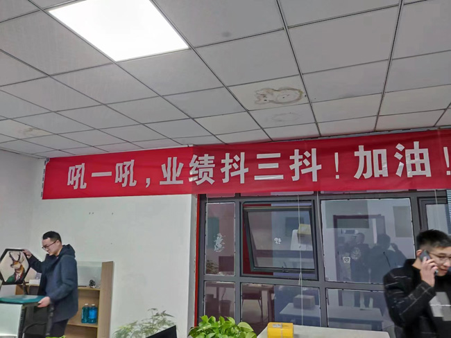 走進騰輝家具,一條催人奮進的條幅“將來的你一定會感激現(xiàn)在拼搏的你”映入眼簾,四通科技的“不吃飯,不睡覺,敲著鍵盤數(shù)鈔票”條幅簡單明了催人沖業(yè)績,還有的拉出 “吼一吼,業(yè)績抖三抖!” 這些熱血沸騰的條幅巧妙打造“備戰(zhàn)”主題,為“雙11”預(yù)售烘托濃厚氛圍。