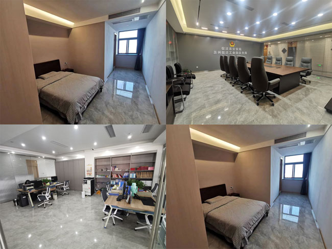 為解決園區(qū)分局日常辦公和值班備勤需要,按照管委會統(tǒng)一部署,將園區(qū)公舍商業(yè)1#樓五樓裝修改造為園區(qū)分局臨時辦公場所。該辦公場所建筑面積約750㎡,設(shè)置辦公室、備勤室、設(shè)備間、會議室、學(xué)習(xí)區(qū)等功能區(qū)域。