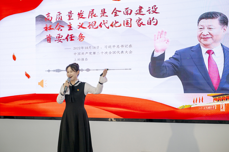 宣講比賽中,她聲情并茂,講述了園區(qū)十八年的發(fā)展歷程。從一片荒蕪之地的園區(qū)到高樓林立的現代化園區(qū),這十八年承載著園區(qū)人的奮斗精神,她說:“要深入學習貫徹黨的二十大精神,以青年人的責任與使命擔負起園區(qū)發(fā)展重任,‘二次創(chuàng)業(yè),再燃激情’,為拓園發(fā)展貢獻自己的青春與力量。”