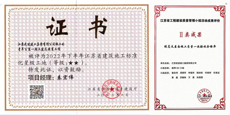 項目在施工中先后獲得了江蘇省建筑施工標(biāo)準(zhǔn)化星級工地、江蘇省綠色施工示范工程、宿遷市工程質(zhì)量管理小組活動II類成果、江蘇省工程建設(shè)質(zhì)量管理小組活動成果評價II類成果等榮譽(yù),同時受到了主管部門、業(yè)界同行的充分肯定。