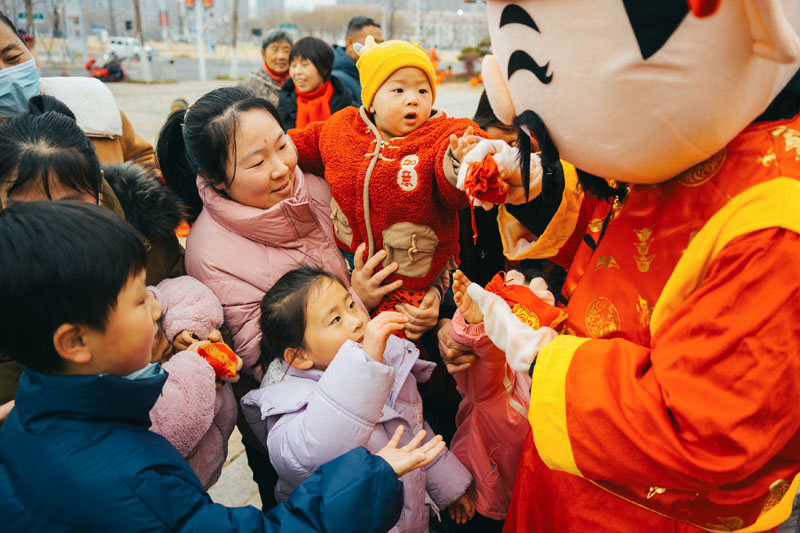 除了精彩絕倫的舞龍舞獅表演,活動現(xiàn)場還邀請了“財神爺”巡游。“財神爺”一路走街串巷,為街區(qū)里的商戶送去新春的美好祝福,祝愿他們新的一年生意紅火、財源廣進。同時,“財神爺”還向市民和游客發(fā)放福袋,大家紛紛上前領(lǐng)取,希望沾沾財氣,收獲滿滿的好運,現(xiàn)場一片歡樂祥和的景象。