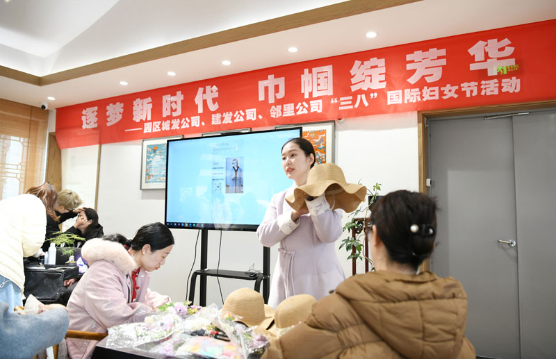 在手工制作環(huán)節(jié),女職工們化身“匠心設(shè)計(jì)師”,運(yùn)用絲帶、花草等材料精心制作專屬禮帽?,F(xiàn)場(chǎng)學(xué)會(huì)運(yùn)用各自的創(chuàng)意巧思,呈現(xiàn)出風(fēng)格各異的作品。