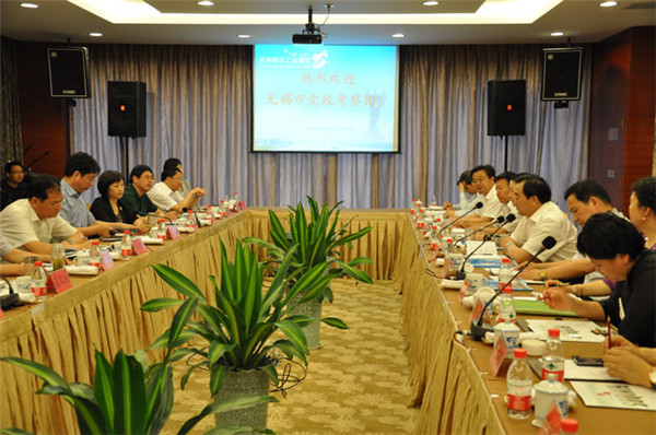無錫黨政代表團(tuán)實地觀摩了園區(qū)規(guī)劃展示廳、園區(qū)公舍、鄰里中心等地。