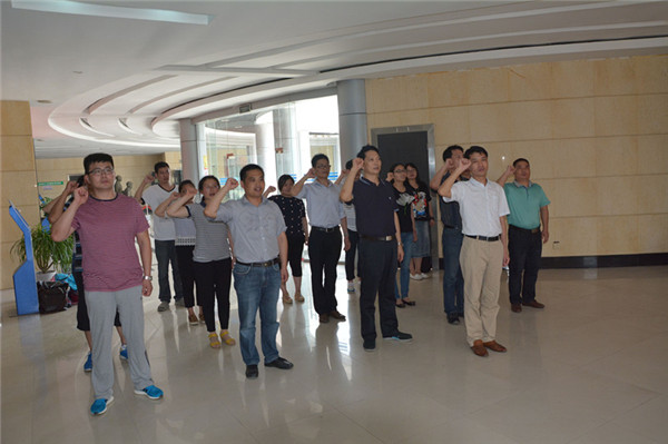 全體黨員干部參觀了紀(jì)念館,展館里大量的歷史文獻(xiàn)、珍貴的革命文物和各個時(shí)期的新聞圖片、資料再現(xiàn)了新四軍軍部在黃花塘運(yùn)籌于帷幄之中,決勝于大江南北的豐功偉績。在紀(jì)念館大廳,全體黨員面對鮮紅的黨旗,莊嚴(yán)地舉起右拳齊聲宣誓,重溫了入黨誓詞。