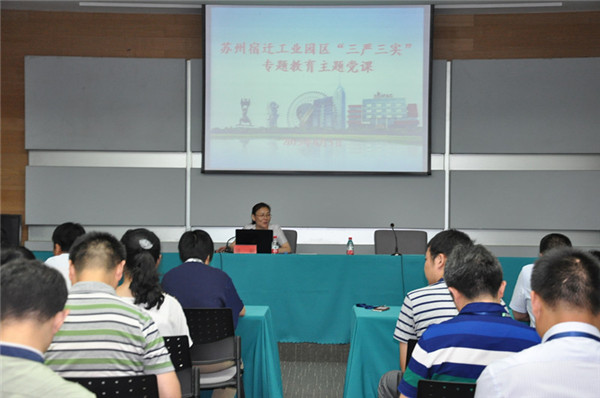 8月5日下午,園區(qū)工委副書記、管委會副主任駱敏為園區(qū)機關(guān)事業(yè)單位、國資國企黨員講了一堂“三嚴三實”專題黨課。
