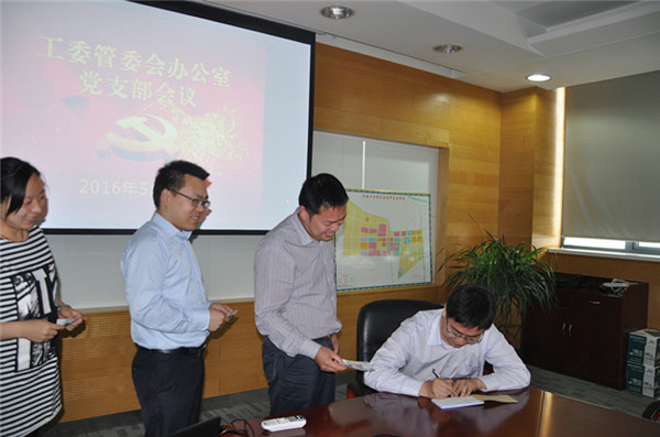 5月20日是園區(qū)工委管委會辦公室黨支部的黨員活動日。活動當(dāng)天,黨支部全體黨員按照園區(qū)“兩學(xué)一做”學(xué)習(xí)教育部署開展集中學(xué)習(xí)。