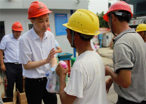 許紹杰仔細(xì)詢(xún)問(wèn)了一線(xiàn)工人工作、生活情況,給他們送上毛巾、礦泉水、沐浴露等防暑降溫用品,并要求施工單位根據(jù)夏季高溫氣候特點(diǎn)及時(shí)調(diào)整作息時(shí)間,認(rèn)真落實(shí)防暑降溫措施,充分保證工人的休息,防止中暑,確保施工安全。