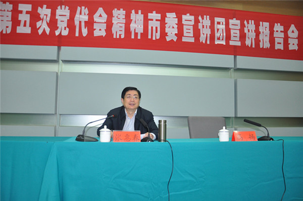 會上,張惠春圍繞市第五次黨代會基本情況,五年來的主要成績和經(jīng)驗,今后五年奮斗目標(biāo)、工作主線及重點任務(wù)等幾個方面詳細解讀了市第五次黨代會精神,報告內(nèi)容豐富、內(nèi)涵深刻。