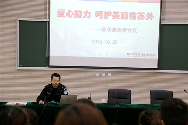 校園安全是學(xué)校發(fā)展的首要工作,更是創(chuàng)建文明校園的重要保障。近日,宿遷市蘇州外國(guó)語(yǔ)學(xué)校召開了家長(zhǎng)志愿者會(huì)議,宿遷市交警支隊(duì)干警和五十名愛心家長(zhǎng)以及學(xué)校相關(guān)行政人員參加了本次活動(dòng),大家齊聚一堂,共同討論并確定了本學(xué)期的家長(zhǎng)志愿者工作安排。