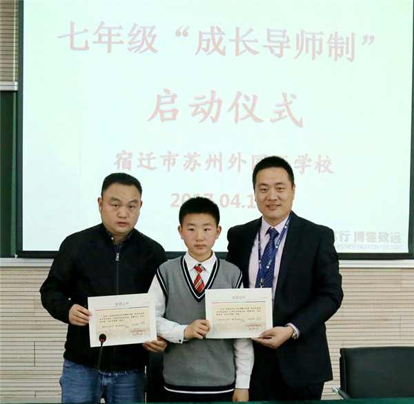 近日,宿遷市蘇州外國(guó)語(yǔ)學(xué)校七年級(jí)16位孩子和他們的家長(zhǎng)監(jiān)護(hù)人還有他們新認(rèn)的“干爹”“干媽”齊聚學(xué)校階梯教室,舉行隆重的簽約儀式。這些“干爹”“干媽”是學(xué)校給首批孩子們配的成長(zhǎng)導(dǎo)師,每位教師與一個(gè)孩子結(jié)對(duì),全方位關(guān)心孩子的成長(zhǎng),陪伴孩子們一起度過快樂而充實(shí)的初中生活,力求“個(gè)個(gè)進(jìn)步,人人成星”?!俺砷L(zhǎng)導(dǎo)師制”這種親情化、個(gè)性化、人本化的育人模式,是宿蘇外實(shí)施素質(zhì)教育,提升教育核心競(jìng)爭(zhēng)力的需要;是宿蘇外服務(wù)家長(zhǎng),擴(kuò)大教育品牌影響力的需要;是宿蘇外回報(bào)社會(huì),落實(shí)“兩聚一高”,建設(shè)和諧社會(huì)的需要。